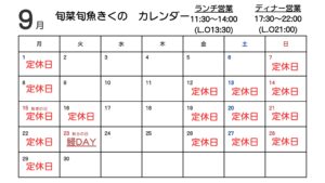 今月の休業日